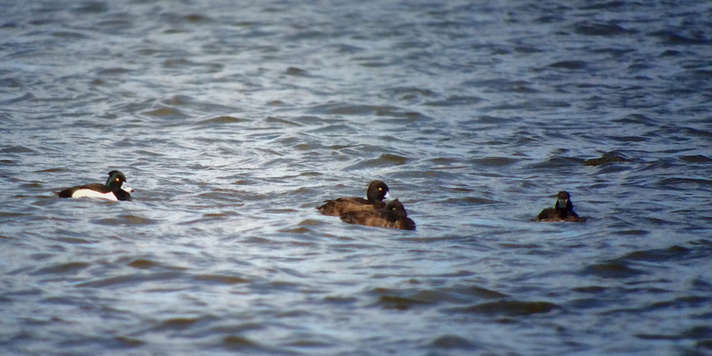 Ved Vilsted Sø var der som sædvanligt godt med ænder, dog ikke meget store koncentrationer, men mange småflokke hist og pist, især af Krik- og Troldand. Østenden gav et par Atlingænder og lidt Sorthalsede Lappedykkere som det sjoveste. På nordsiden af Munksjørupvej var der en del Pibe-, Krik- og Troldænder samt Bramgæs. Mens jeg er ved at scanne igennem en lille flok Troldænder får jeg øje på en Havlit hun og få sekunder efter spotter jeg en hybridhan Halsbånds- x Troldand.